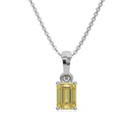 Fancy Yellow Emerald Solitaire Diamond Necklace made with an fancy yellow emerald cut diamond in a four prong setting with adjustable chain.