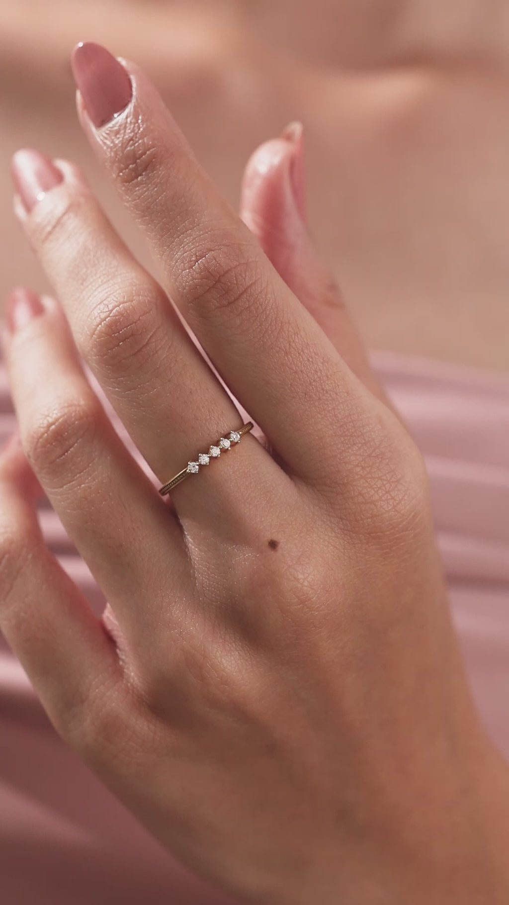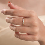 5 Round Diamond Ring handmade with five round brilliant-cut diamonds and set in a shared four prong setting with milgrain detailing on the band.