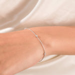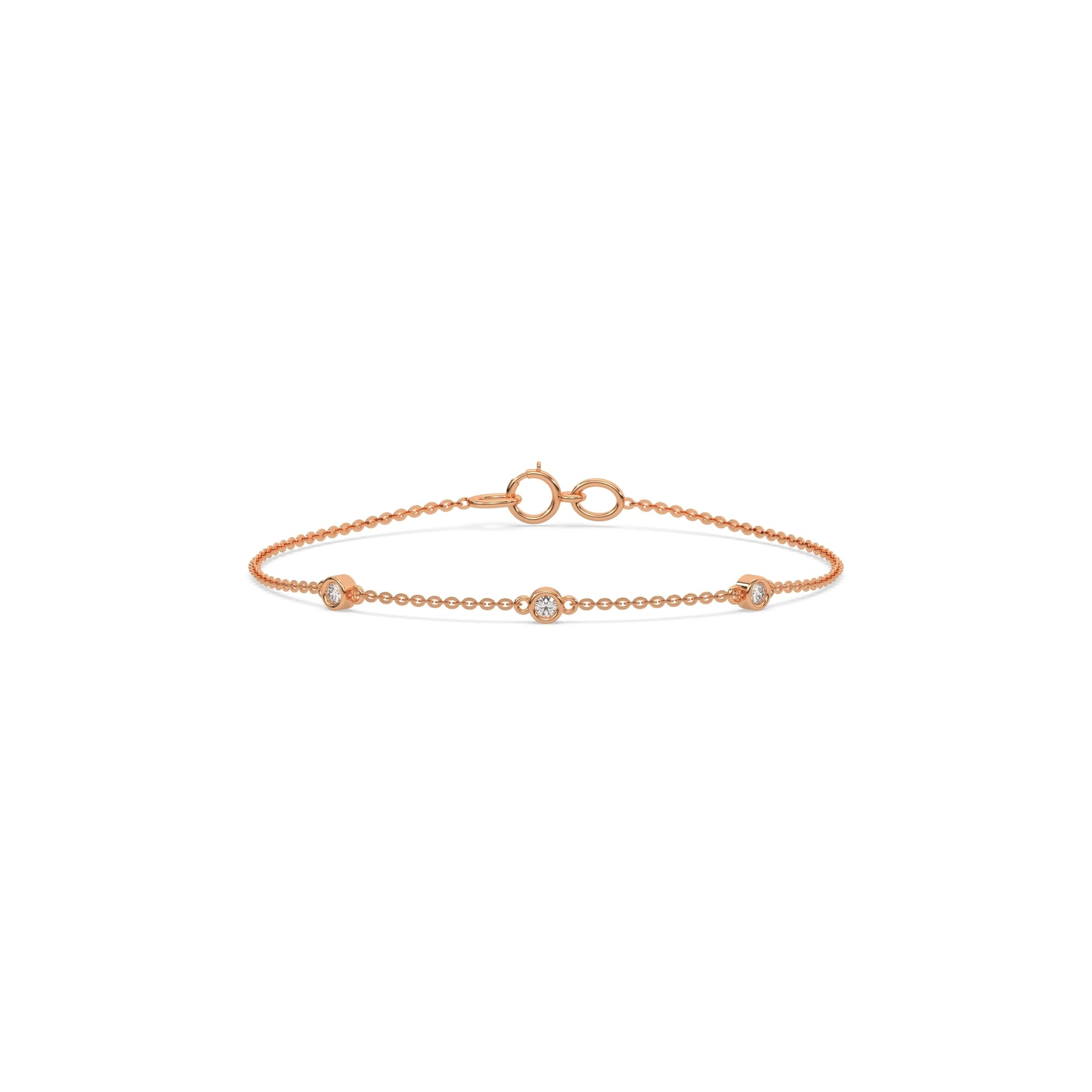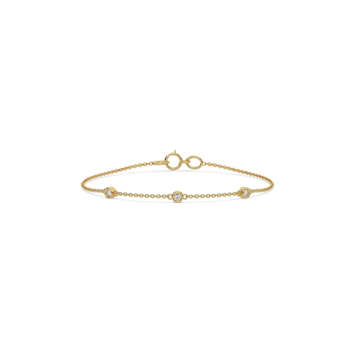 Three Round Diamond Bracelet made with three round brilliant-cut diamond set at distance and securely set in bezel setting.