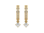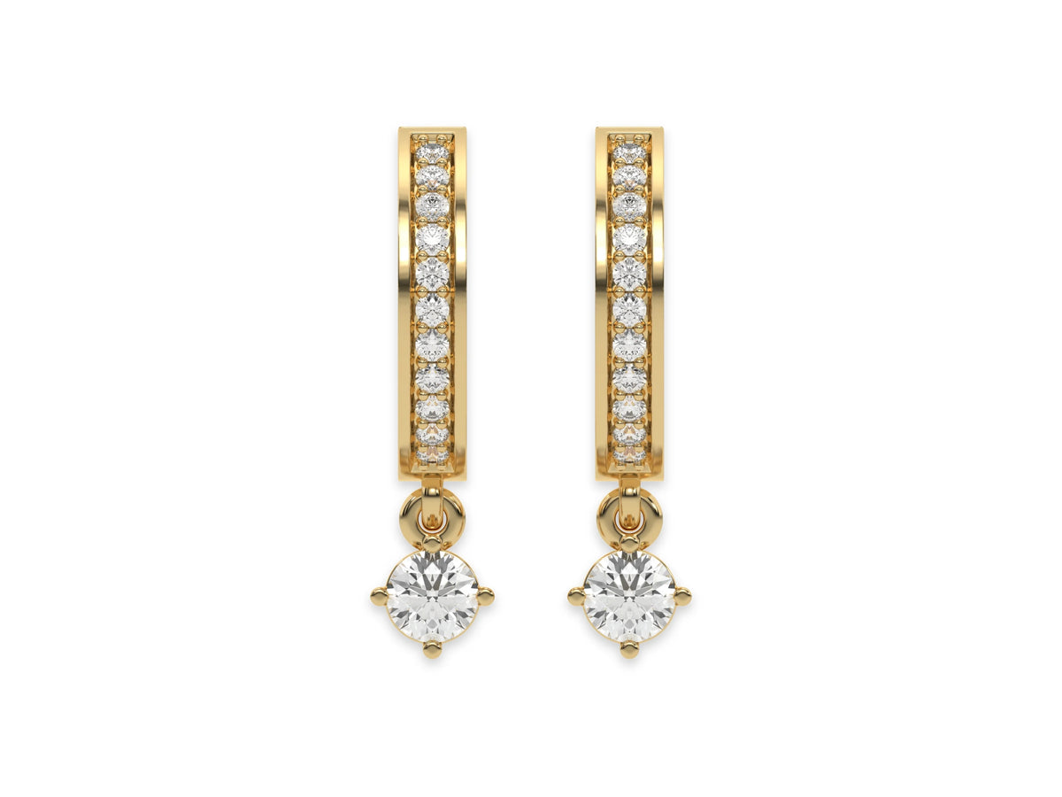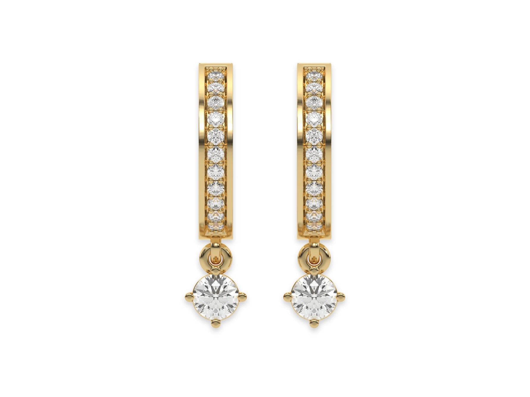 18k yellow gold round cut diamond dangling hoop earrings in pave setting