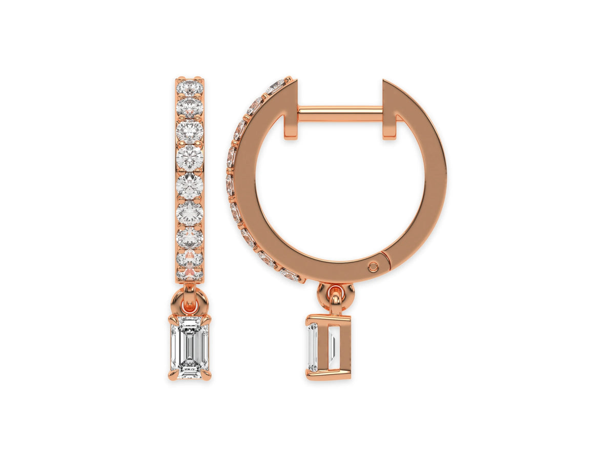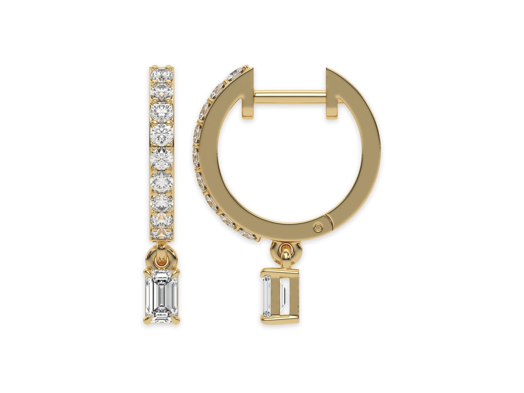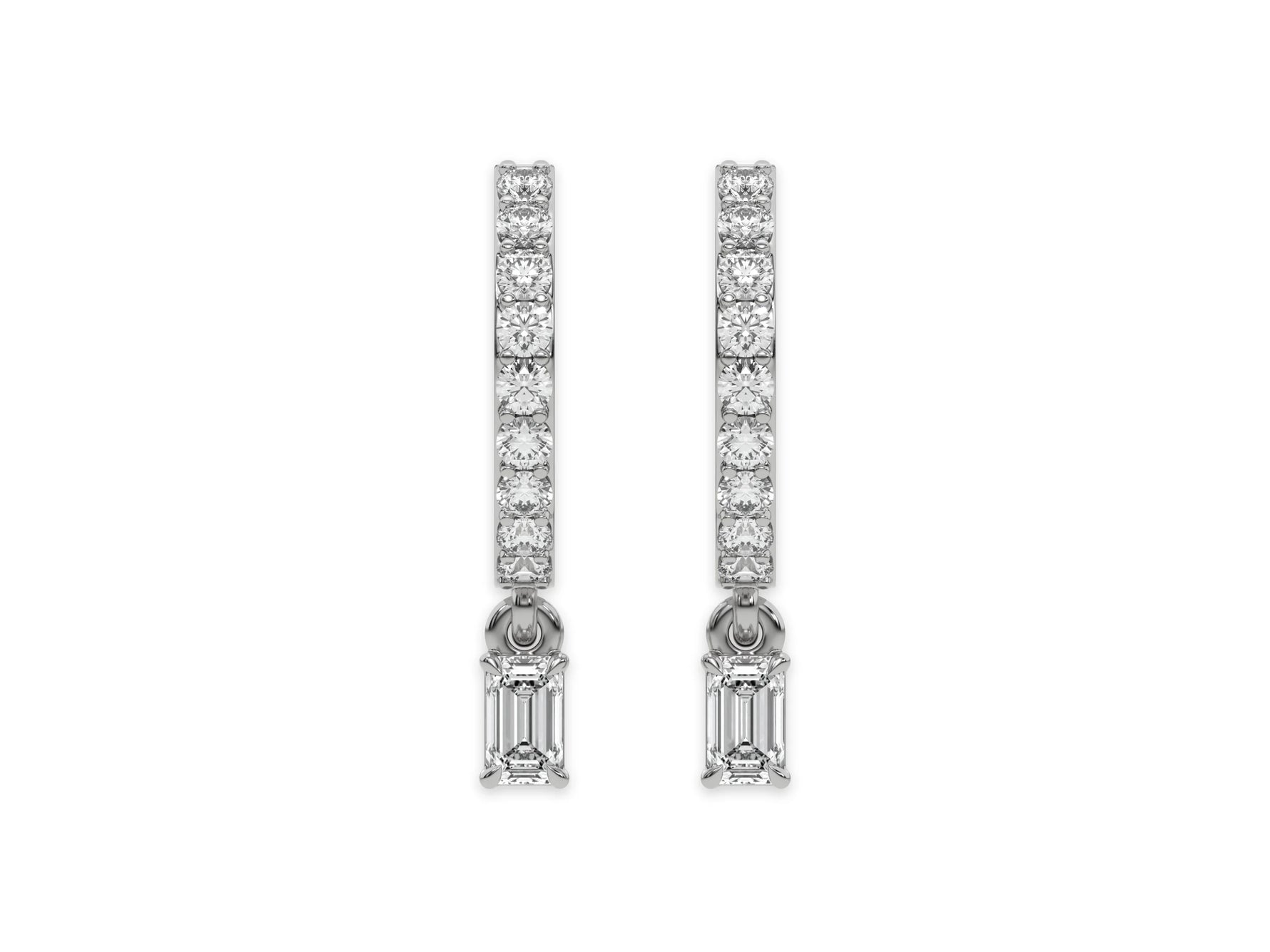 0.40 CT Natural Diamond Emerald Cut Drop Hoops Earrings
