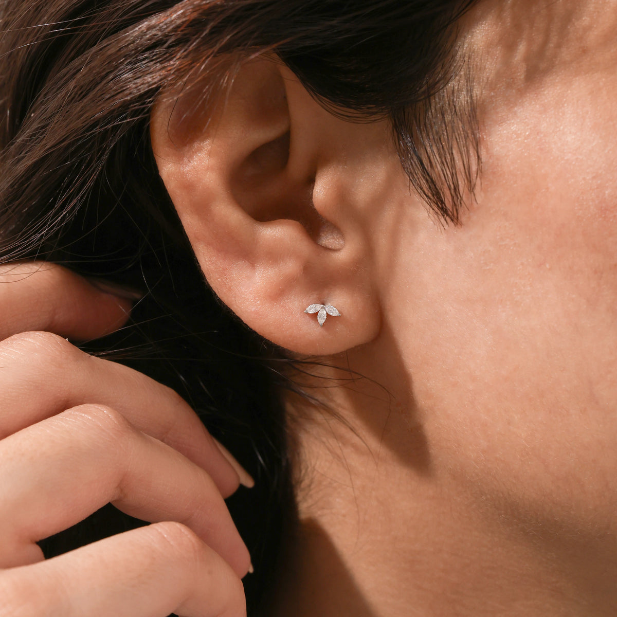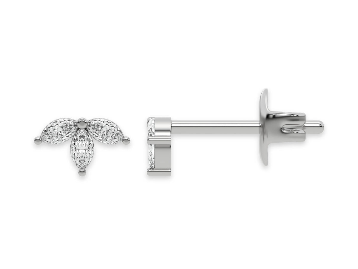 Marquise Crown Earrings made with three marquise diamonds and arranged to form a crown-like shape, securely set in prong setting.