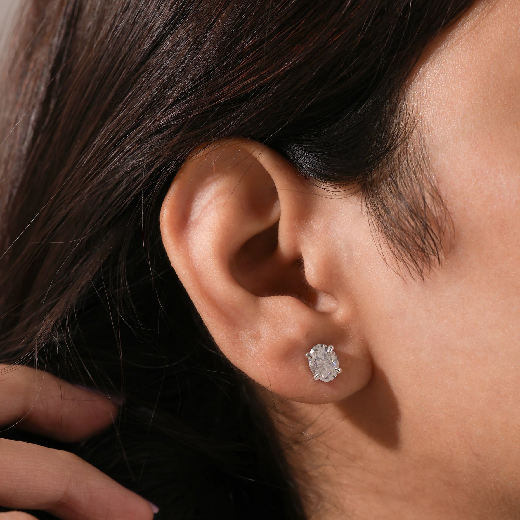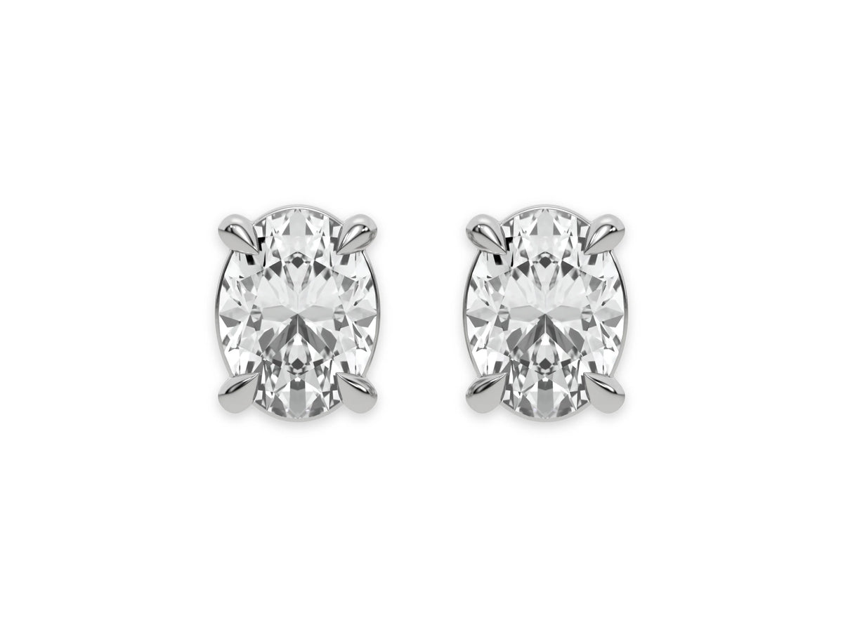 18k white gold oval cut diamond stud earrings set in a four prong setting.
