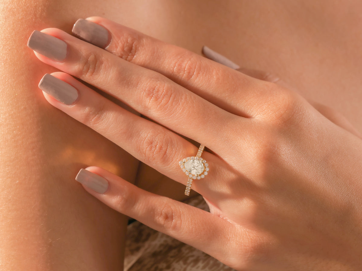3 CT Natural Diamond Pear Cut Halo Pave Engagement Ring