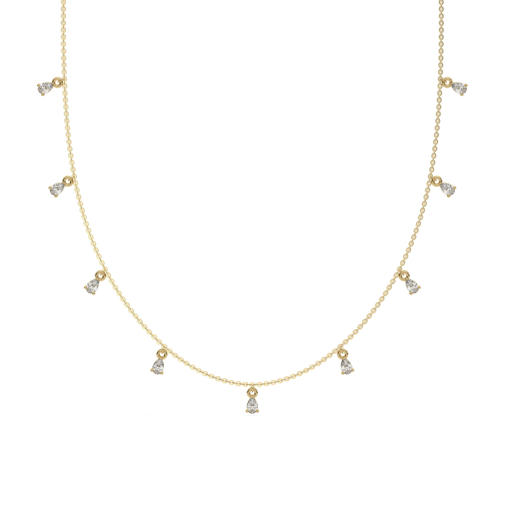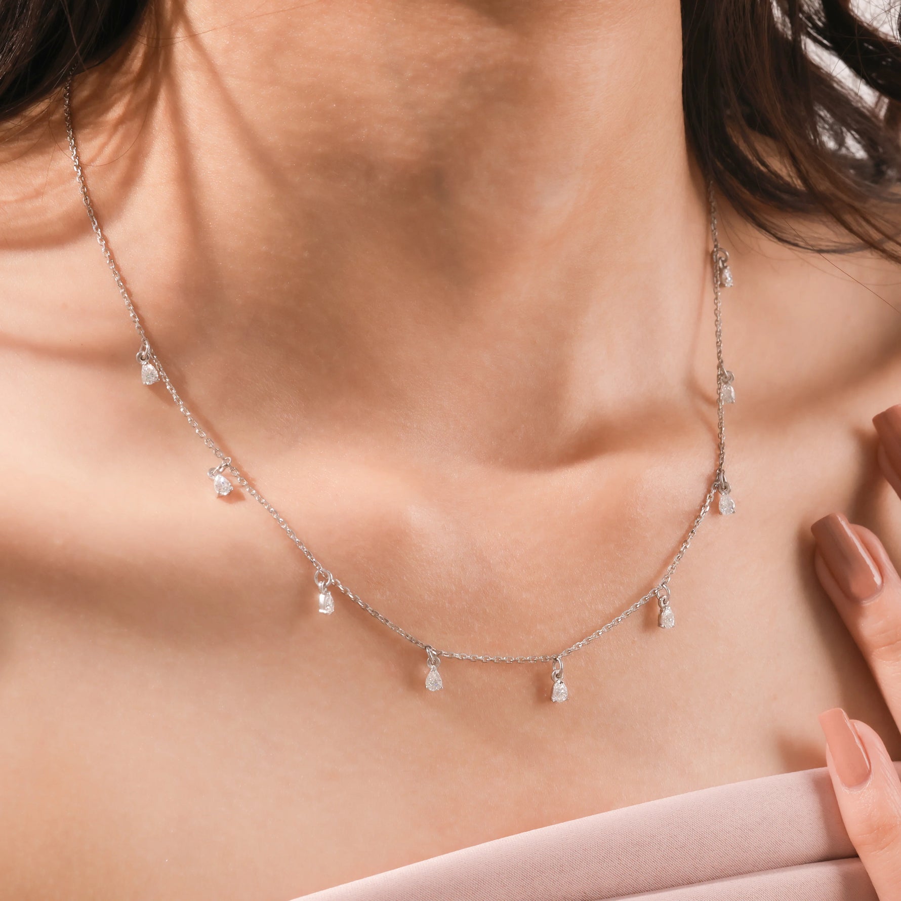 0.90 CT Nine Natural Diamond Pear Dangling Necklace